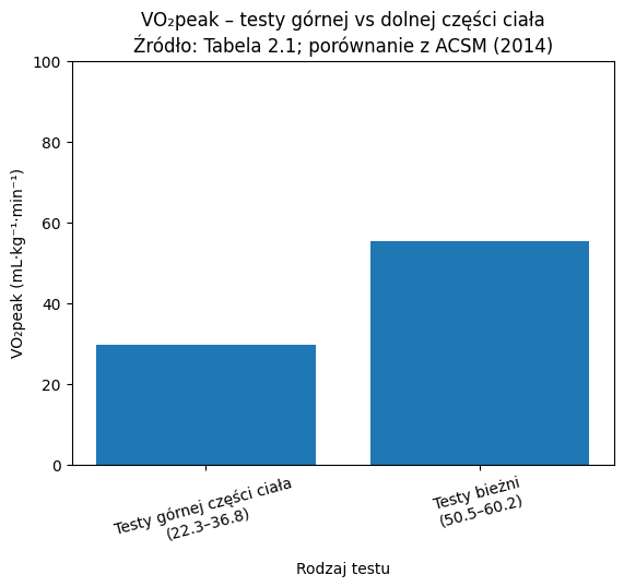 Zmierzmy VO2peak używając głównie kończyn górnych. I tak też zrobiono na ręcznym cykloergometrze lub na ergometrze wioślarskim.